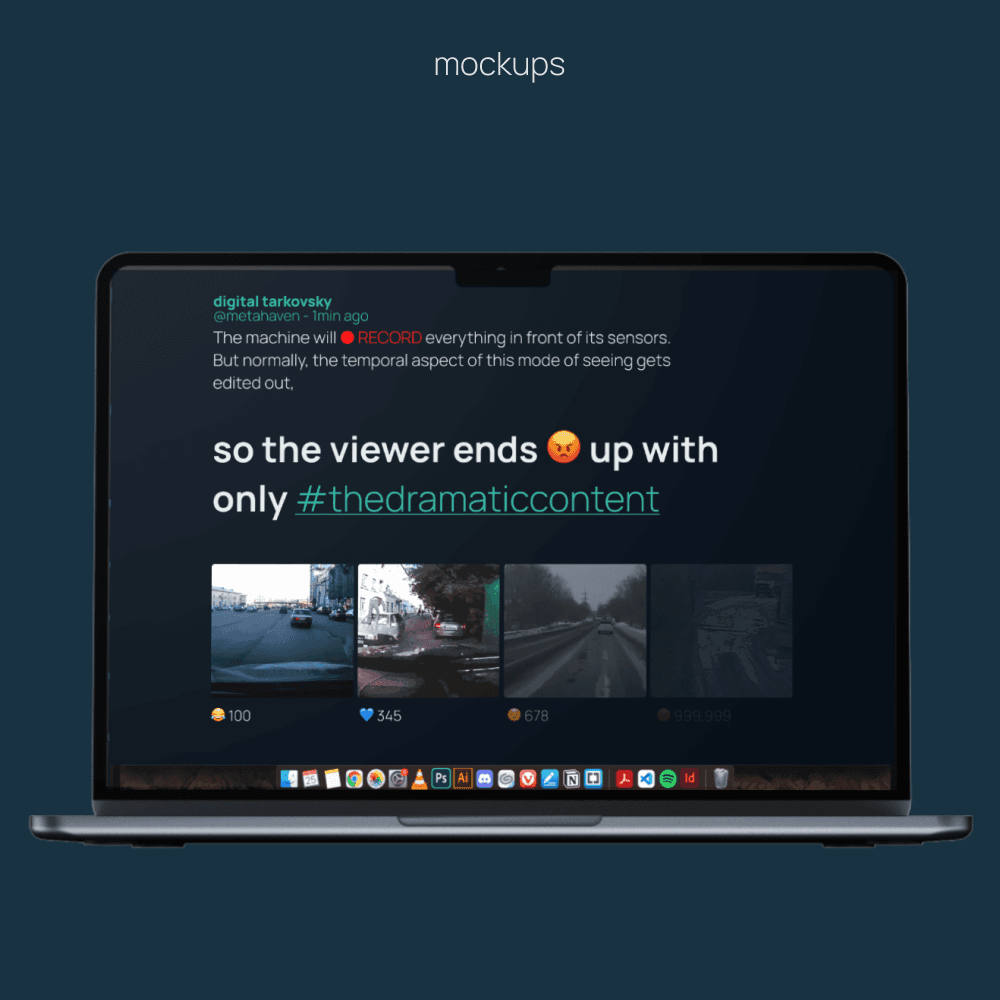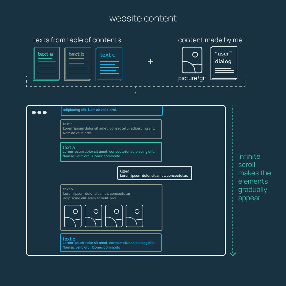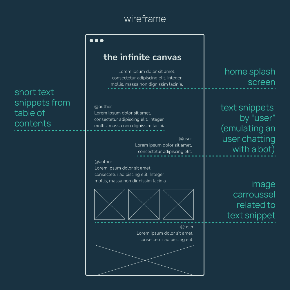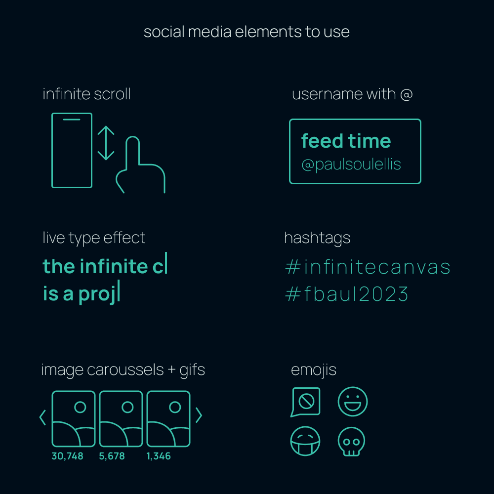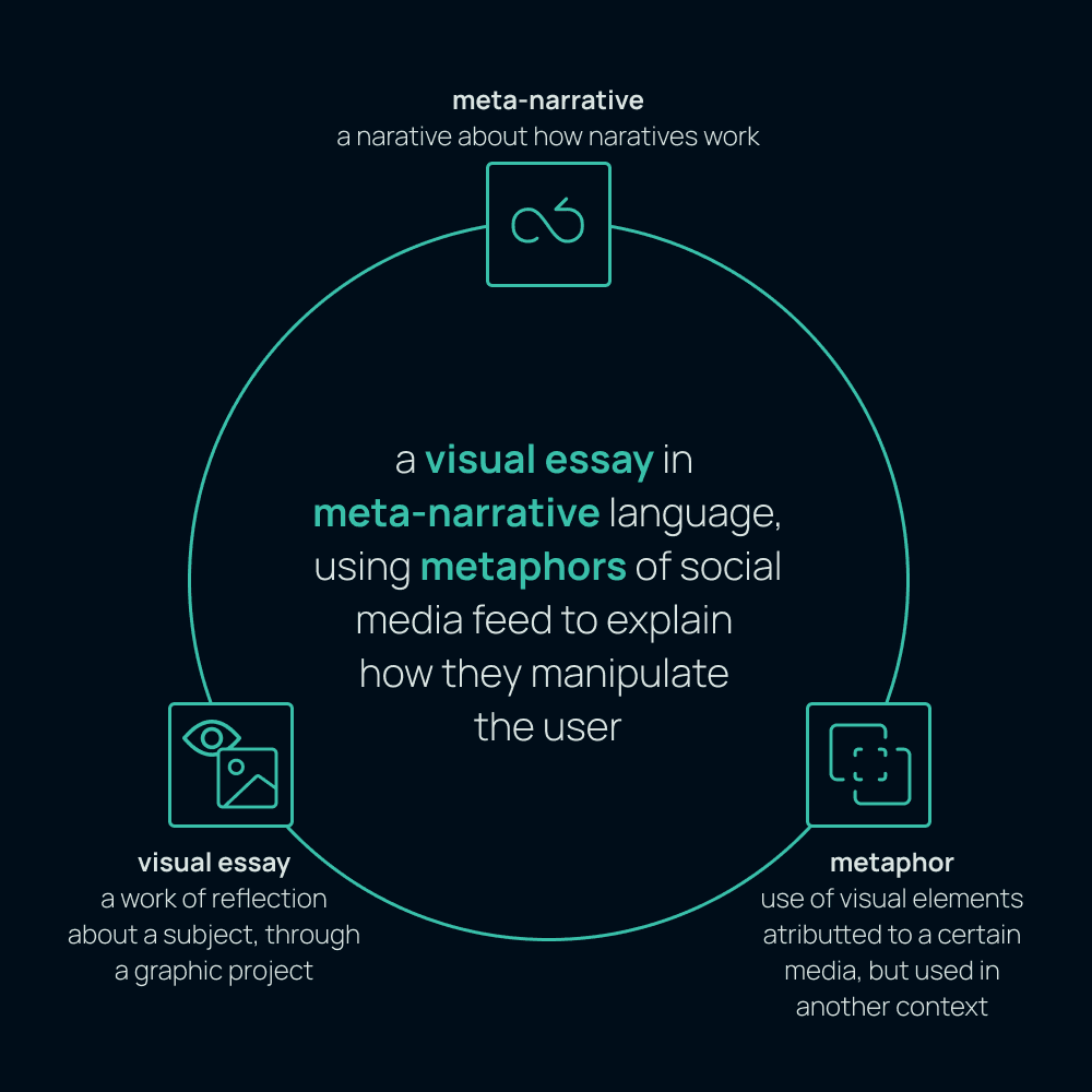 In a daily life shaped by smartphones and constant connectivity, we are constantly navigating endless streams of real-time information accumulations. As Paul Soulellis explains, these feeds are streams that undermine the ability to discern any “chronology, context or value” through an overwhelming accumulation of information. The Infinite Canvas explores the feed as an infinite and unstable flow of information, focusing on its potential as a visual narrative medium. The project is inspired by Metahaven’s reflection on our experience of social media as a fragmented cinematic experience, whose narrative is ultimately “realized” and controlled by algorithms. In this sense, it evokes Olia Lialina’s critique of the gradual conditioning of users according to the paradigms of Web 2.0, alluding to algorithmic functionalities of personalization and prioritization of content that determine the narrative threads of a feed, on platforms such as Instagram, Twitter or Facebook. Through a crossover of fragmentary narratives, which allude to Scott McCloud's teachings on the temporality of visual narratives, The Infinite Canvas seeks to explore some of the visual mechanisms of the feed as a continuous flow of information, highlighting its visuality and narrative potential.